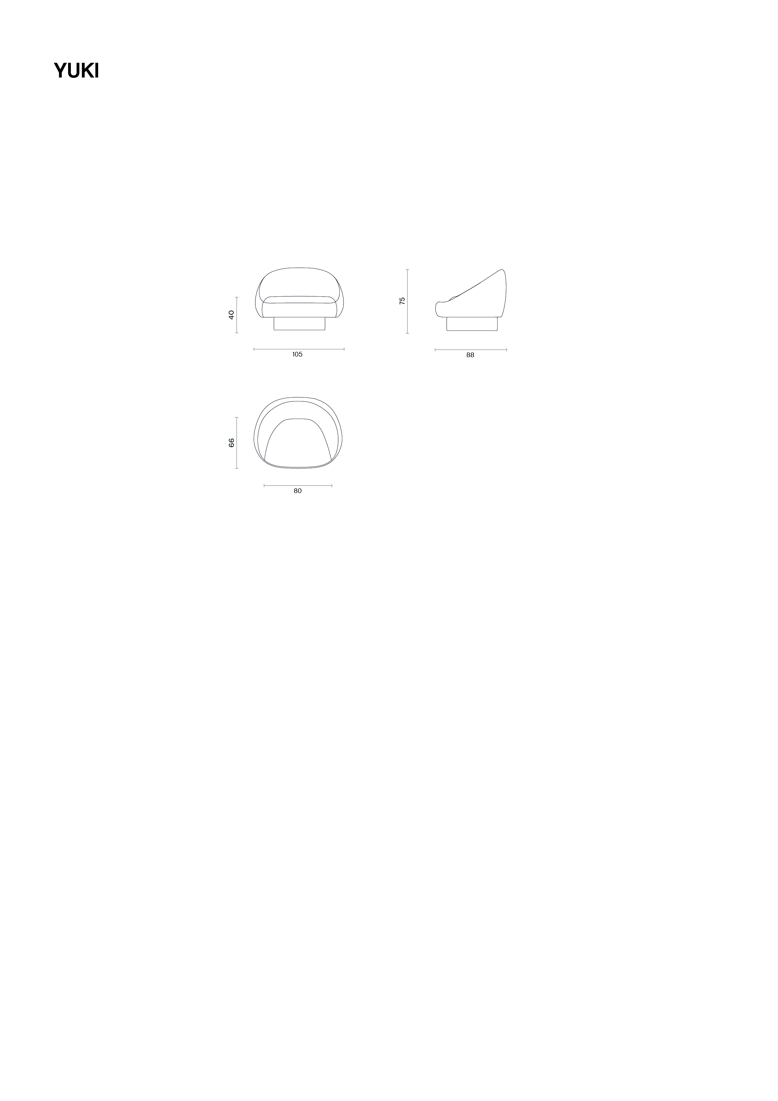 Yuki, tekli, ikili ve üçlü seçenekleriyle aynı tasarım dilini farklı ölçeklerde korur. Mekânın kendi kimliğini koruyarak, çeşitli kullanım senaryolarında doğal bir uyum sunar. Kumaş ve deri döşeme alternatifleriyle sunulan Yuki, konfor ve formu dengeli bir bütünlük içinde bir araya getirir.